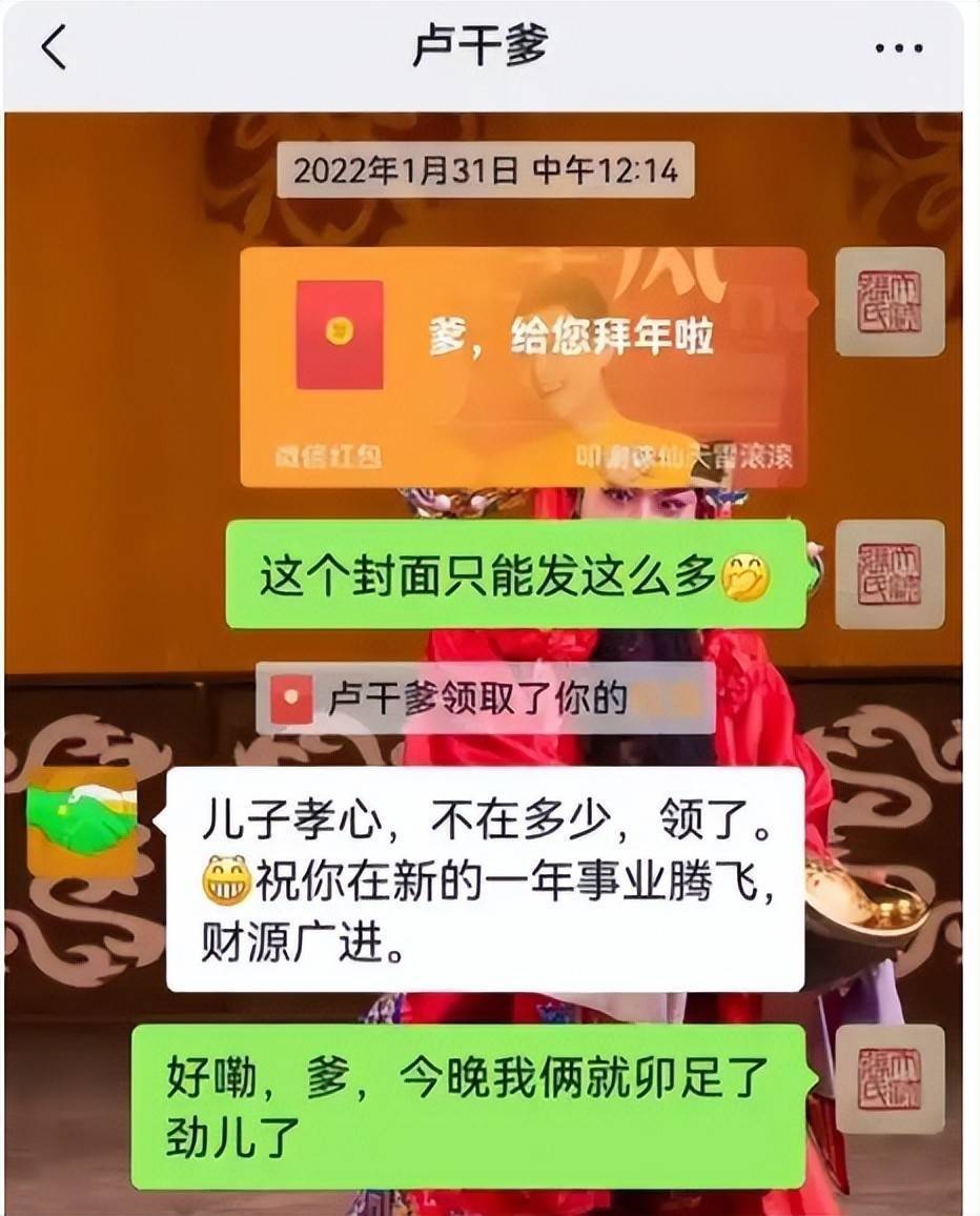 记录显示,玉浩将卢父备注为“干爹”,每逢春节、中秋必发祝福与红包;卢家遭遇变故期间,他还主动协助联系资源、筹措善款;对话中卢父屡次表达感激之情,字里行间满是慈爱与认可,全然不见所谓“辱骂”痕迹。